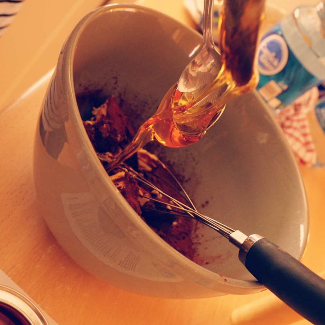 3. Place the treacle , butter, sugar and cocoa powder in a mixing bowl and using a whisk, beat until light and fluffy