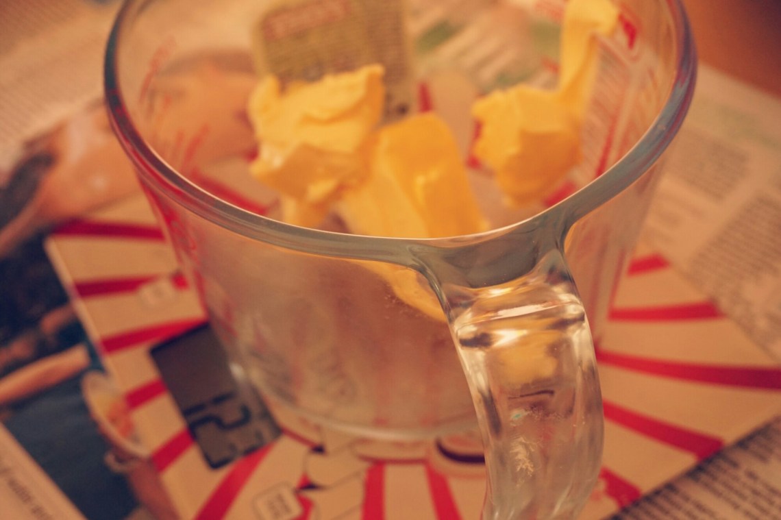 2. Grease a tin (make sure your tin is secure and doesn’t have a slip through base as the water used for steaming later on might seep into it and we do not want that! π±) with butter and put in the fridge.