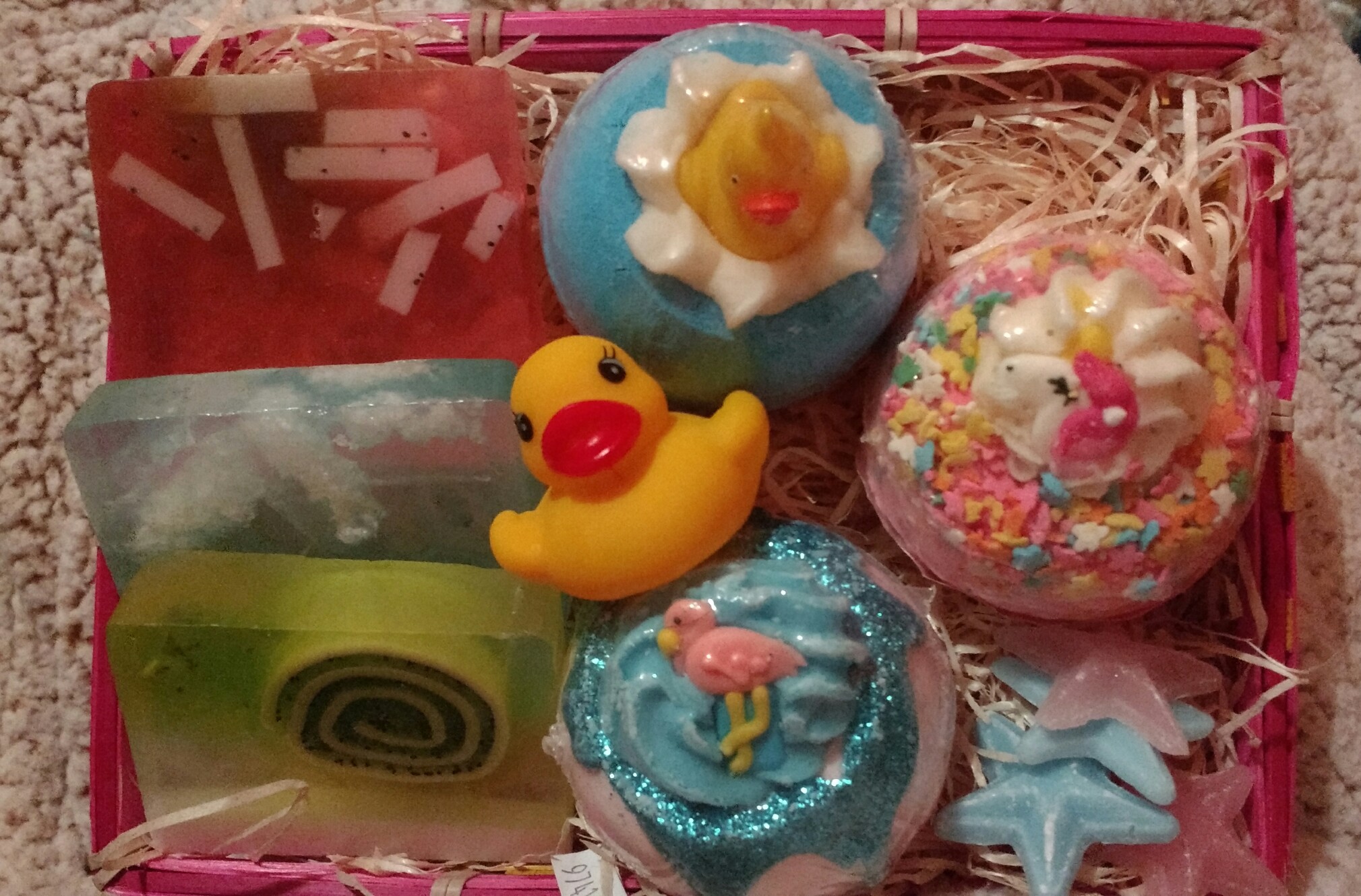 In order to celebrate my one year blogiversary last month my sister surprised me with this early Christmas present! 🤗💕 She selected 3 soaps (Kiwi, Tropical fruit and dead sea salt), 3 mini star bath fizzers and 3 bath bombs (Flock Star, Pool Party and I believe in unicorns) and a little duck! I’m honestly lost for words, they all smell so lovely and are unique treats. I am hoping to review these alongside the bath bombs and other products I received around the Christmas period 😆