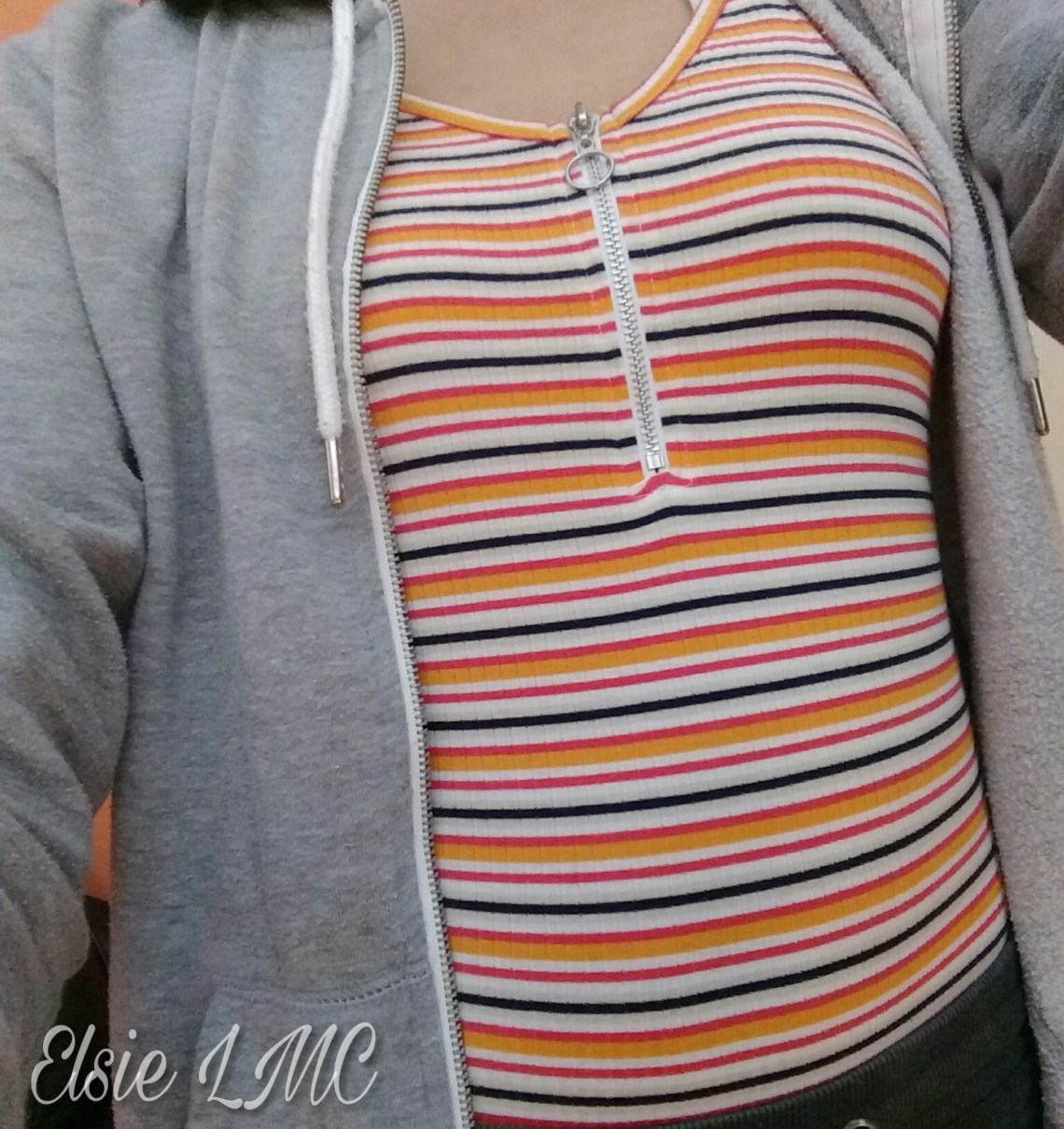 We also went to Penney’s where I got a striped bodysuit that is stretchy and perfect for just lounging around in: