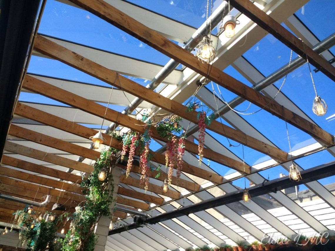 The ceiling and various pillars situated throughout the room were beautifully laden with flowers and it was so pretty.