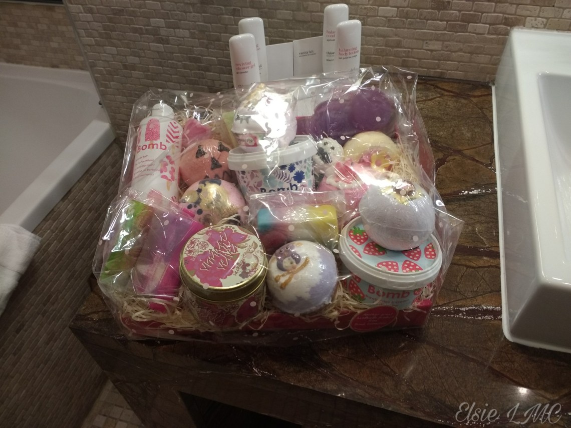 Mine tasted so good and that wasn’t an easy feat for them to achieve considering it didn’t have any cheese on it but I can remember saying it was the best I’d had! After we made the delicious pizza’s vanish my sister gave me a set of 3 bath bombs and asked me if I could check something in the bathroom whereupon I found a hamper of more bath bombs 😍 (I admit I didn’t see them on the counter straight away and she had to come in and point them out before I left 🙈😂).