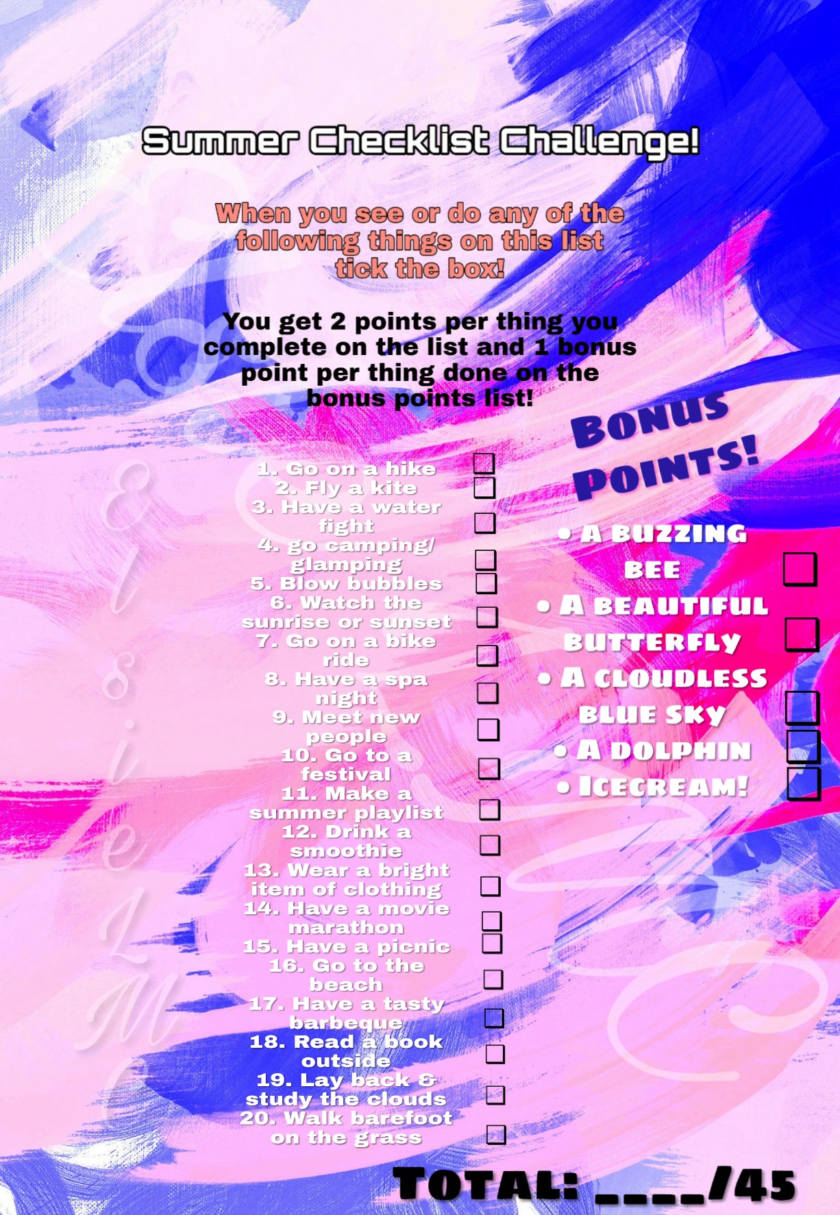 Hello there! 💖 Today I’m coming at you with something I’ve been working very hard on….a free printable!! 🤣 The aim of the game is to tick the box of anything on the list that you manage to see or do this Summer and then when the season is over add up your points to get your score and compare it to the total amount of possible points (45) fun eh? 😂