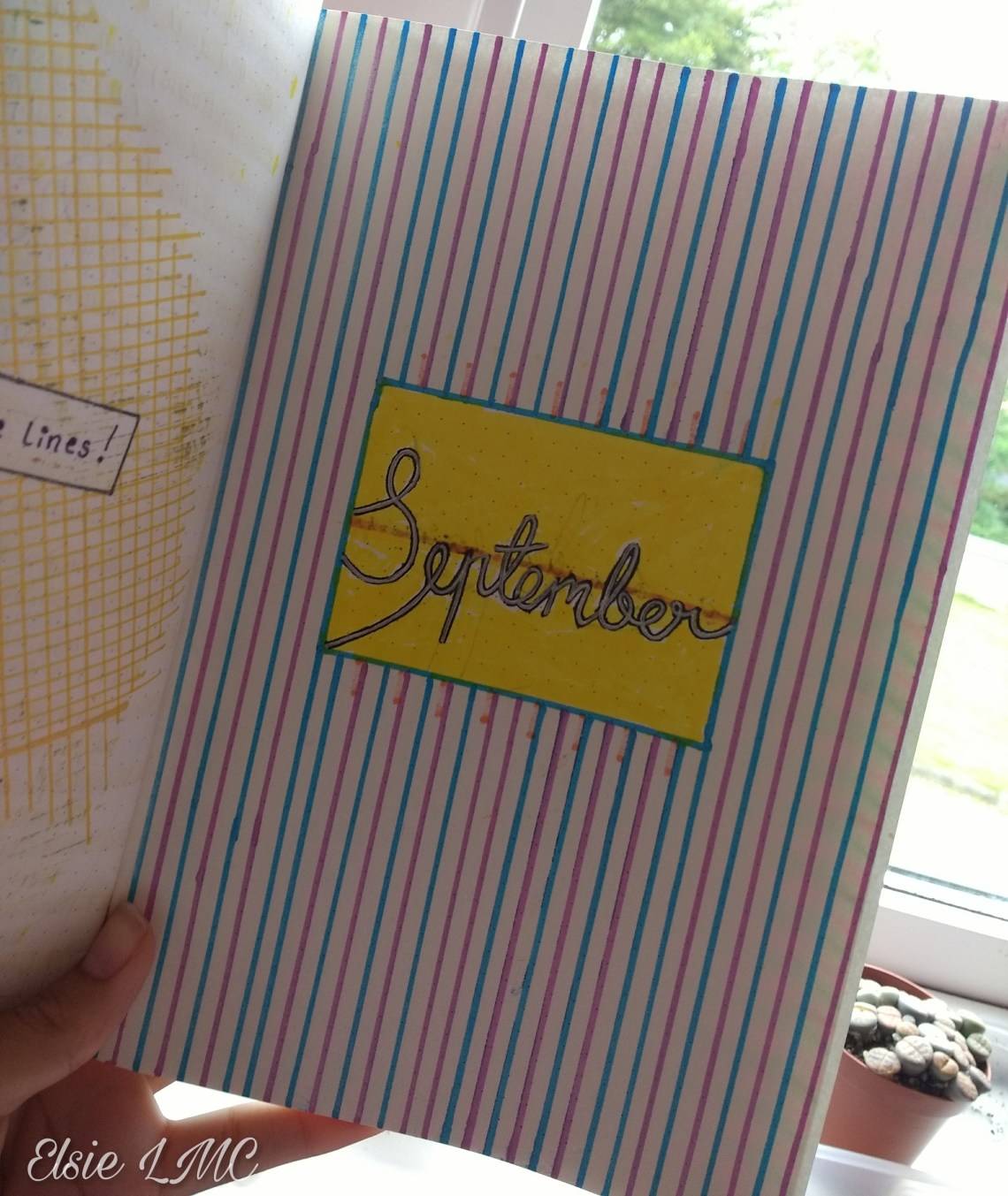 Then I announced that it is September! I used turbo glitter pens to draw the lines and wrote the words in silver before outlining with a black Staedler pen. The yellow colouring was added so as to try hide the ink coming through from the other side but it didn’t really work 🙄😂. I am in love with those glittery effect pens and although they don’t completely show up well in photos I get to experience them in full on this side so that’s all that matters 😏😂.