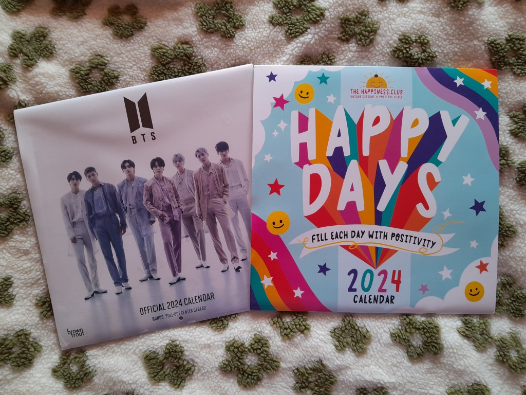 The BTS one is from my dear friend Christina over at Sea of Words blog and I also have a matching Happy Days calender from The Happiness Club which has even more beautiful quotes within. I’m looking forward to hanging them both up in my room!! ๐